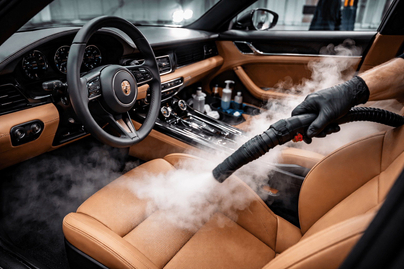 Une réinitialisation complète de l’habitacle de votre véhicule. Nous utilisons un nettoyage à la vapeur professionnelle et des produits enzymatiques pour éliminer bactéries, odeurs et taches incrustées. Les surfaces en cuir sont traitées avec des soins au pH équilibré pour restaurer leur souplesse et prévenir les craquelures, tandis que les tapis sont extraits à l’eau chaude pour retirer la saleté en profondeur.